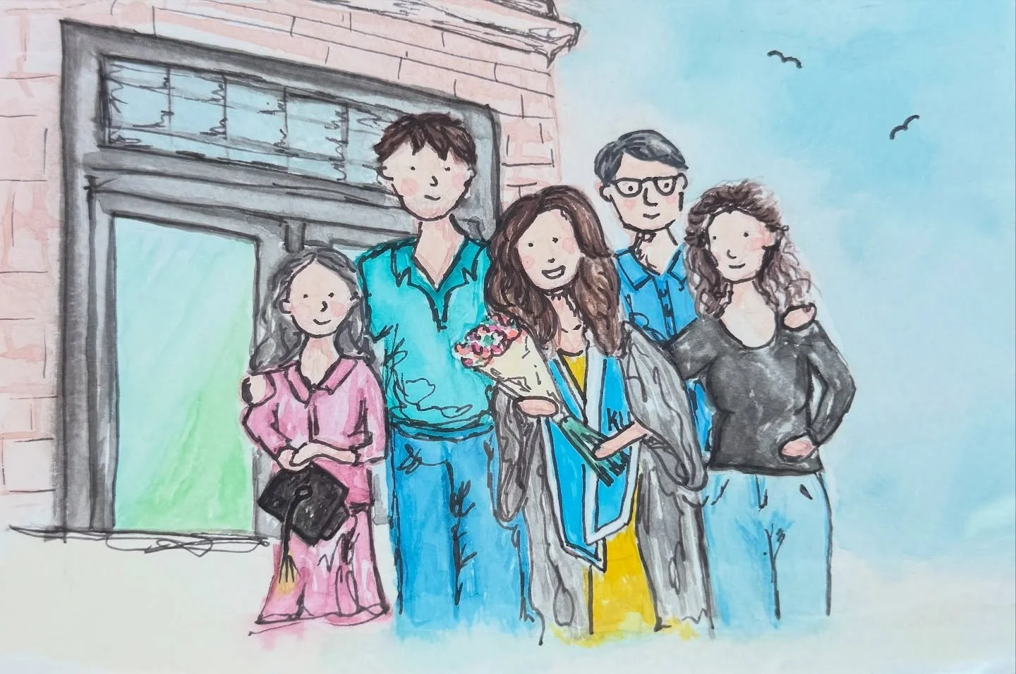 “I combine my love for watercolor with a fine liner to create adorable, instantly recognizable portraits”